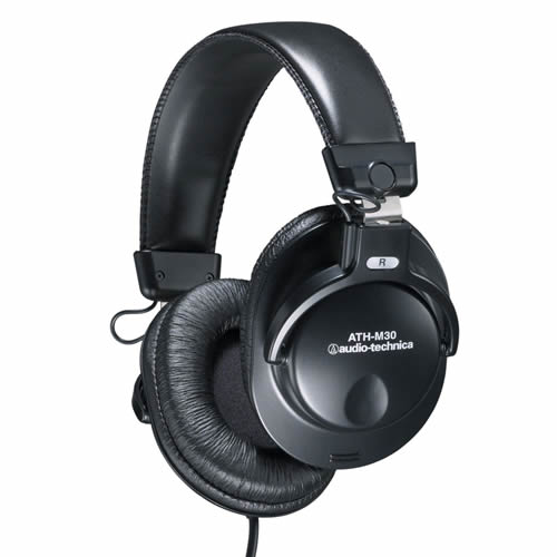 A perfect choice for project studio engineers, home recordists and recording musicians, Audio-Technicaメs ATH-M30 dynamic stereo headphones offer the highest level of sonic accuracy in a design engineered to provide maximum comfort for hours of listening. The headphones’ low-profile, closed-back design provides exceptional clarity and superior isolation in high-volume listening situations. Features include: neodymium magnet structure; lightweight, adjustable cushioned headband; gold-plated stereo 1/8″ (3.5 mm) connector with strain relief and screw-on ᄐ” (6.3 mm) adapter; ultra-flexible 11′ cable with single-side exit.